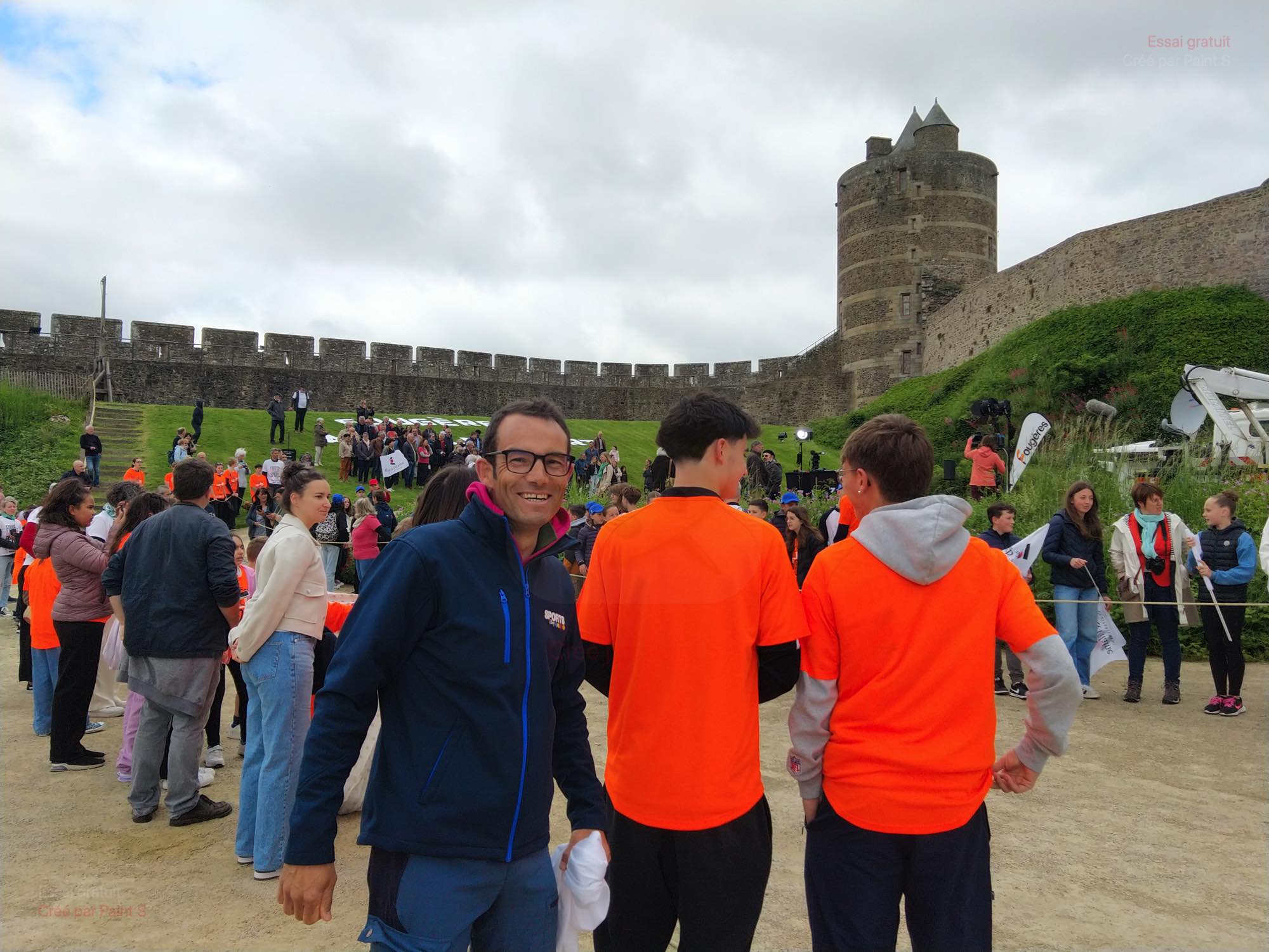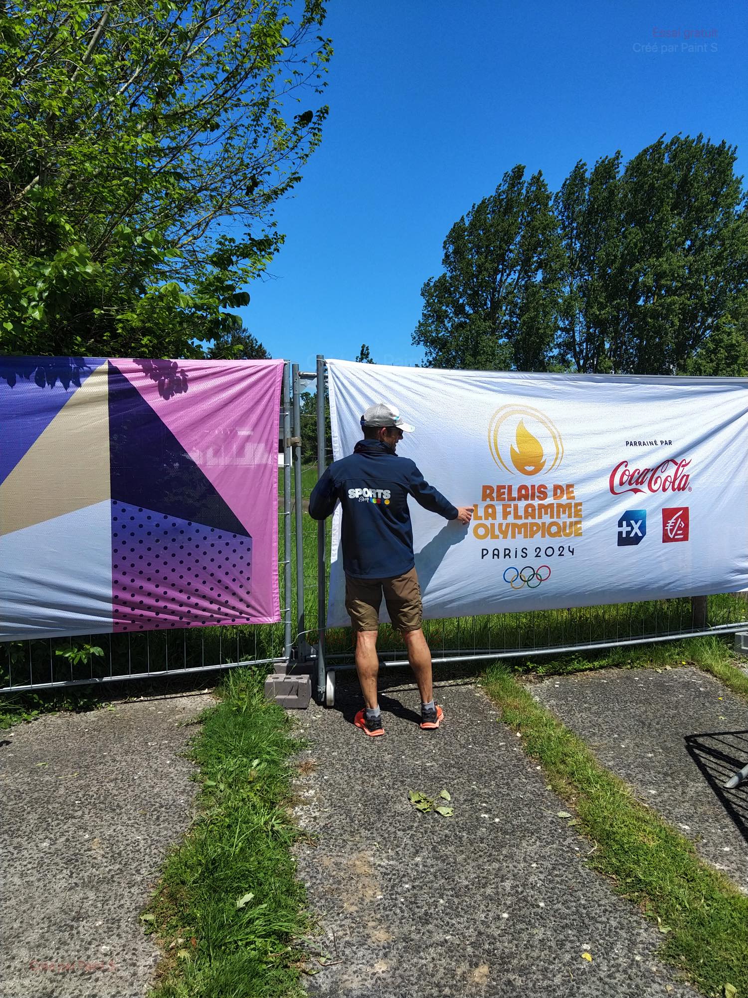 Dès le lendemain matin, le samedi 1er juin 2024, j’ai à nouveau eu le privilège de participer au départ et à l’arrivée de la Flamme Olympique à Fougères.