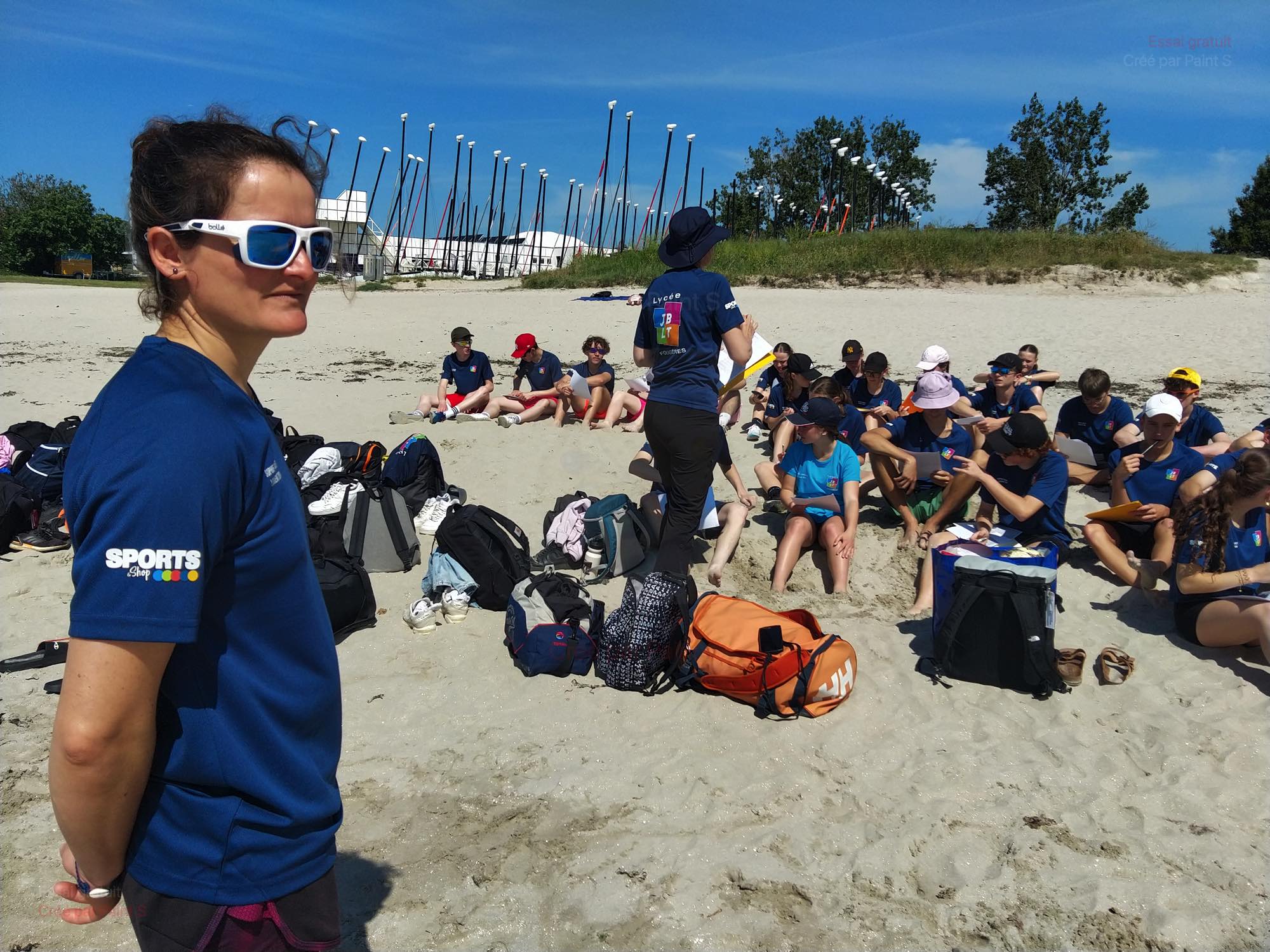 Enfin, le lundi 3 juin 2024, c’est sous un soleil radieux, une mer plate et un petit vent que les élèves de Seconde Option EPS du lycée JBLT, site Notre Dames des Marais, étaient réunis à l’Armor-Plage, autour de Sophie FAGUET, skipper professionnelle afin de découvrir le métier de sportive de très haut niveau, de discuter de la place des femmes dans le sport et de s’initier à la pratique du catamaran.