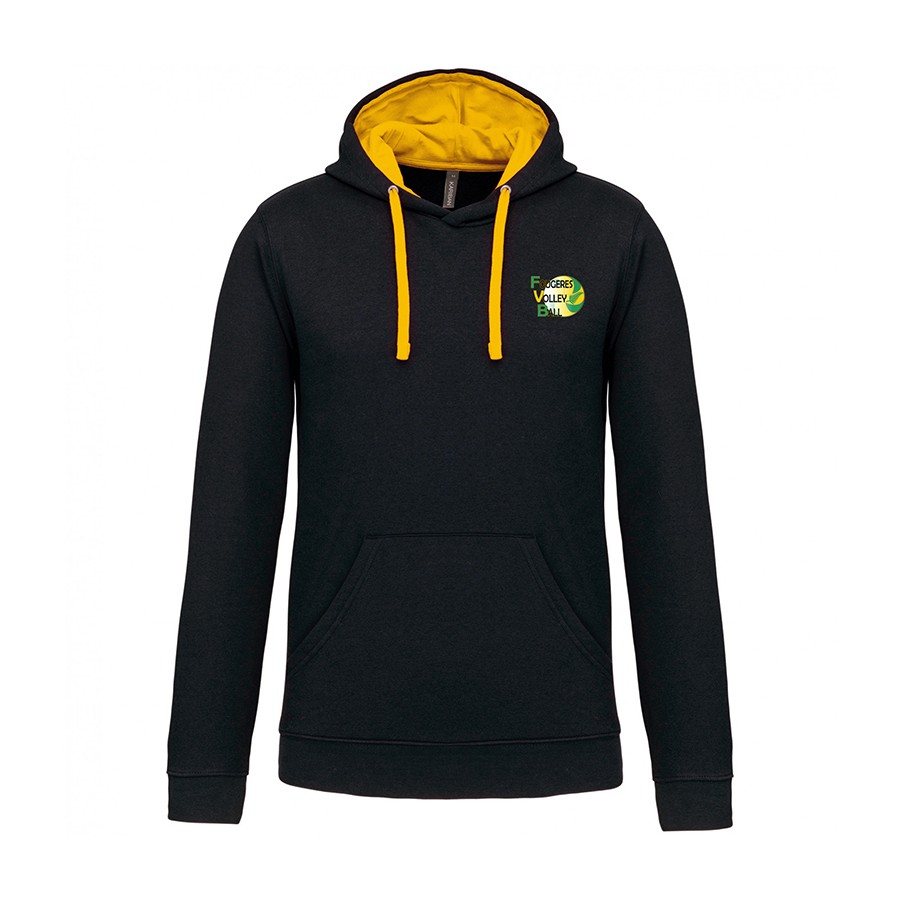 Sweat-shirt à capuche bicolore au look casual et décontracté.