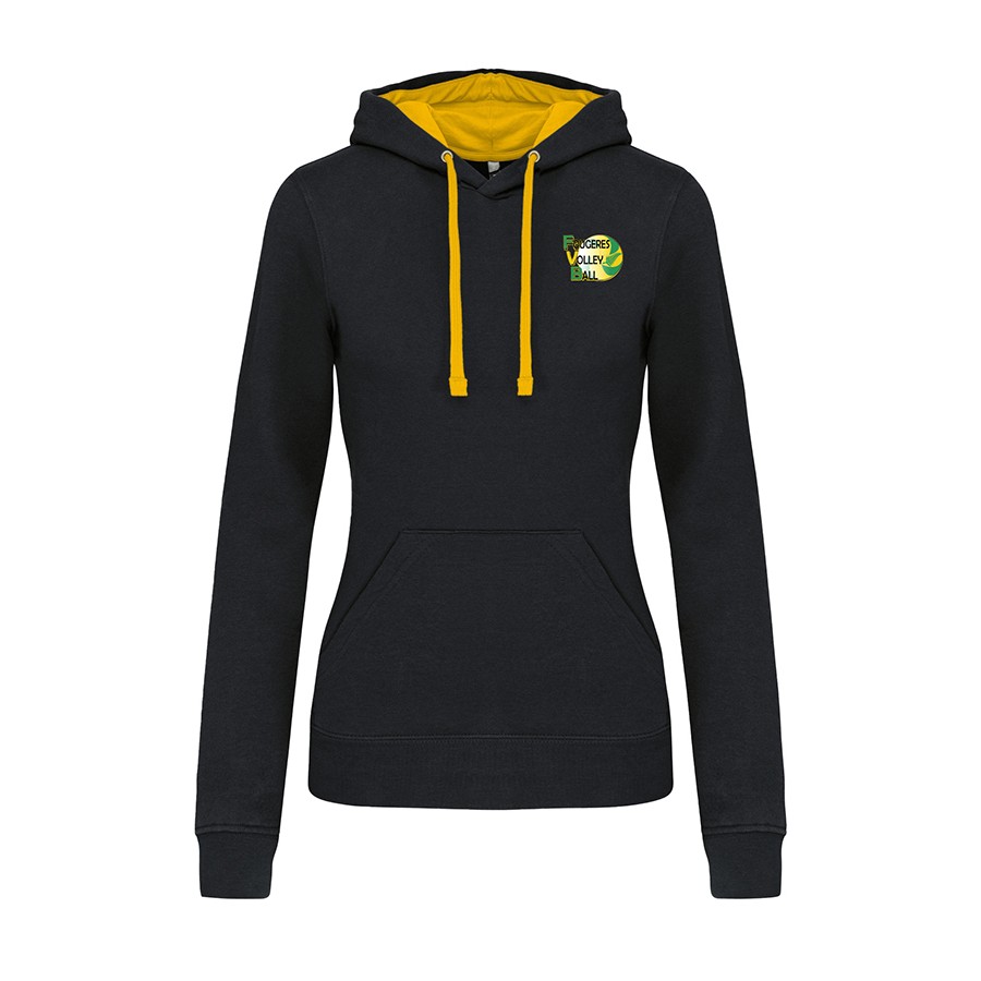 Sweat-shirt à capuche bicolore au look casual et décontracté.