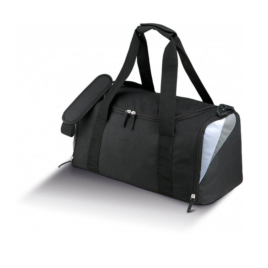 Sac de sport / sport collectif en polyester 600D. 2 poches côté et un compartiment range chaussures, lanière d'épaule renforcée et amovible. Porte étiquette transparente pour identification aisée. Taille moyenne 55 litres. 2 couleurs disponible