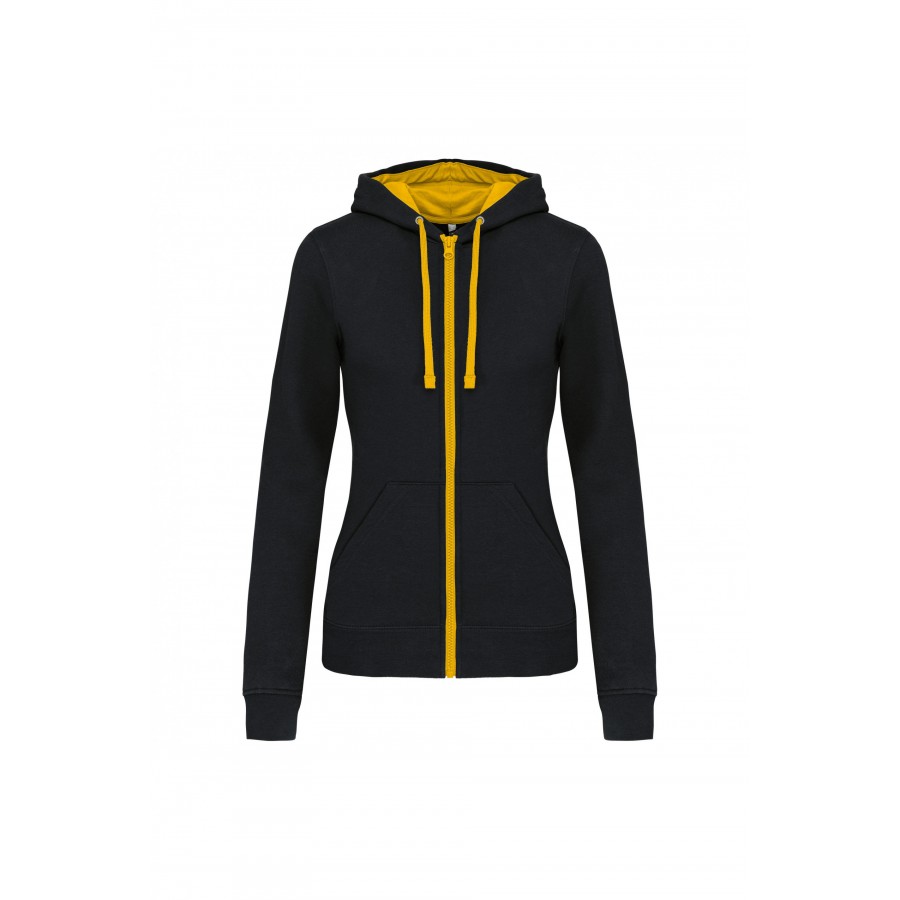 Sweat-shirt zippé capuche contrastée femme Noir/Jaune