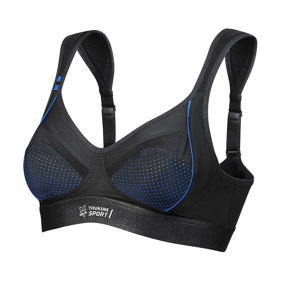 Thuasne propose une gamme complète de brassières et soutiens-gorge de sport adaptés à différentes morphologies et niveaux d’impact des sports pratiqués, regroupés en 3 catégories : maintien normal, supérieur et extrême.