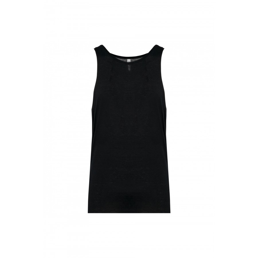 50% polyester/ 25% coton/ 25% viscose. Coupe près du corps. Encolure ronde. Dos échancré. Finition double aiguille à l'emmanchure et bas de vêtement. Etiquette de marque Tear-away. (Exemple de marquage, vendu vierge).