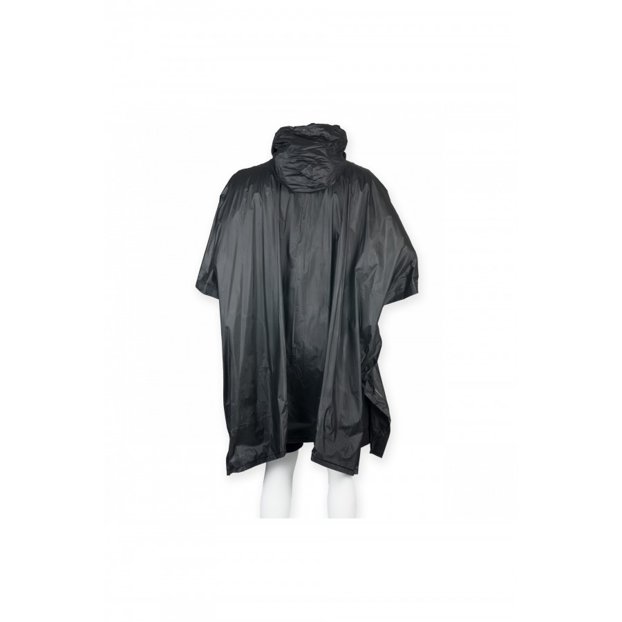100 % PVC. Poncho avec col à boutons pression. Peut être replié sur lui-même dans sa pochette. Capuche à cordon de serrage. Imperméable et coupe-vent, il peut également se poser pour se protéger d'un sol humide.