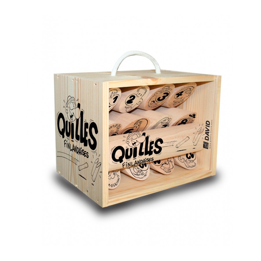 Dans ce superbe coffret en sapin vous trouverez donc 12 quilles en hêtre numérotées de 1 à 12, un lanceur et une règle du jeu à la bretonne.