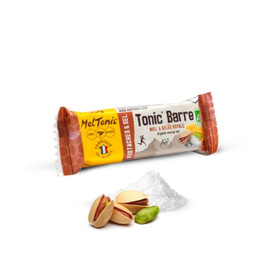 Meltonic vous propose une barre énergétique salée avec un délicieux goût de pistache pour les athlètes. Conçue sur une base de miel, cette barre au sel de Guérande est spécialement formulée pour stimuler l'organisme et varier les goûts & les textures pour éviter les lassitudes durant l'effort. Une recette innovante aux ingrédients naturels, bio et croquants !