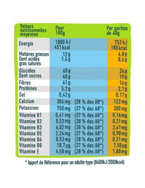Comment ? Des glucides, des fruits à coque et des graines qui soutiennent les besoins en énergie. * La vitamine B6 contribue à réduire la fatigue. La vitamine B2 contribue à protéger les cellules contre le stress oxydatif produit au cours de l'effort. Les + Sans gluten. Une recette riche en fruits, en fruits à coque, graines et source de vitamines. Le goût savoureux des fruits et des fruits à coque (amandes et noisettes) + texture moelleuse.