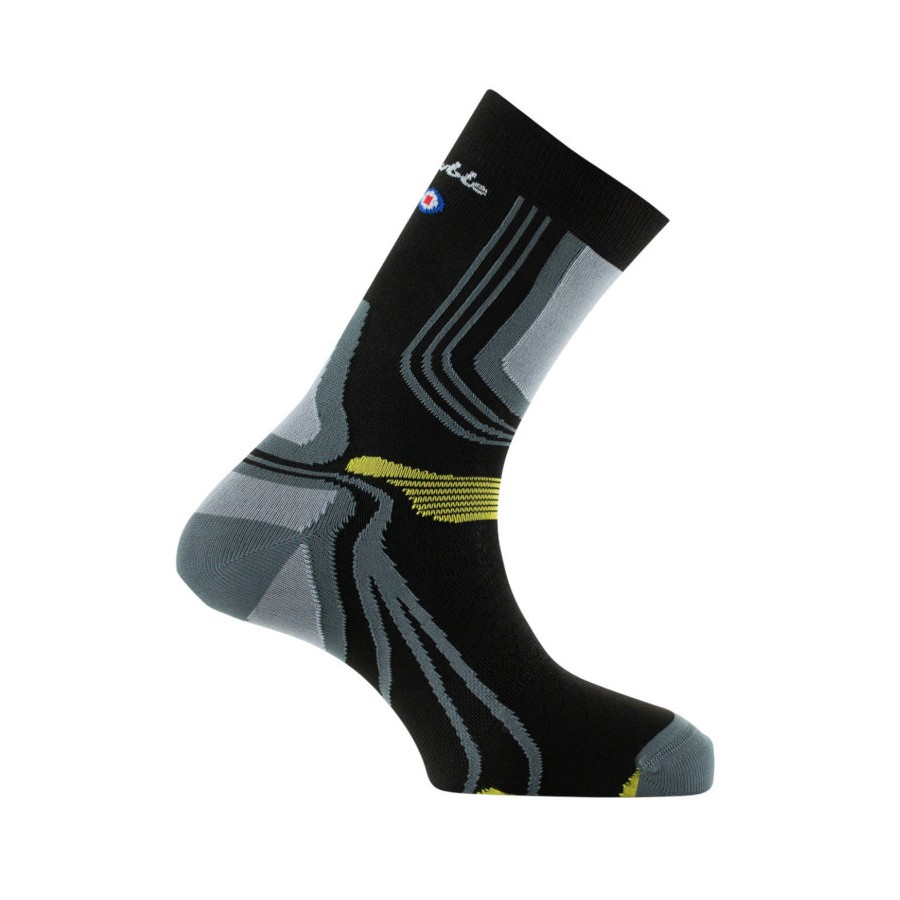 Composée de 2 chaussettes en microfibre, l'une adhère au pied, l'autre à la chaussure, structure facilitant le frottement des chaussettes entre elles, limitant ainsi les risques d'échauffements et d'ampoules. Ventilation confortable grâce à l'aération intérieure et extérieure en nid d'abeille.