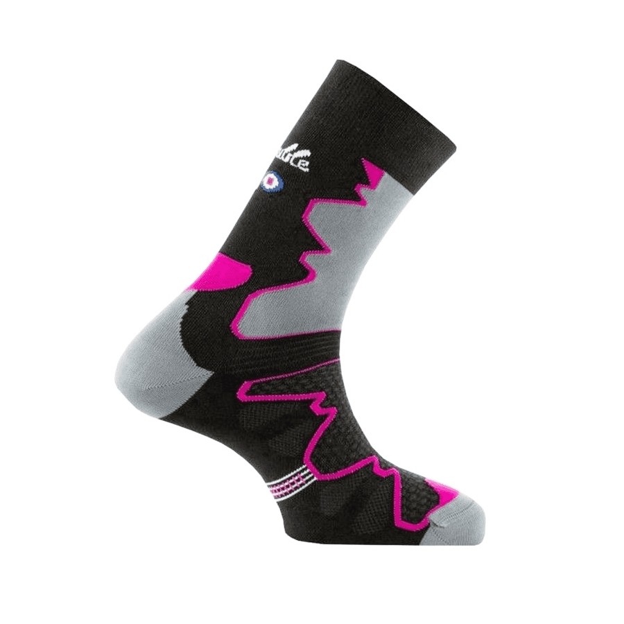 Composée de 2 chaussettes en microfibre, l'une adhère au pied, l'autre à la chaussure, structure facilitant le frottement des chaussettes entre elles, limitant ainsi les risques d'échauffements et d'ampoules. Ventilation confortable grâce à l'aération intérieure et extérieure en nid d'abeille.