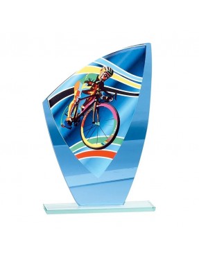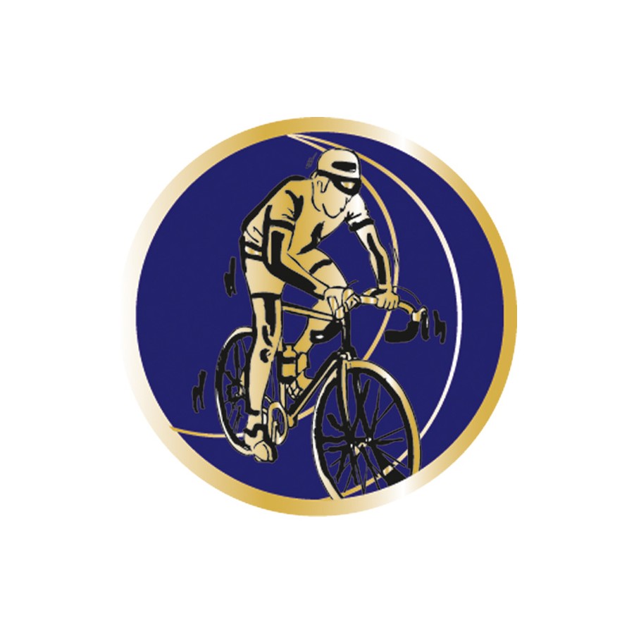 Pastille cyclisme en époxy or et bleu, pour personnalisation de trophée. Autocollante.