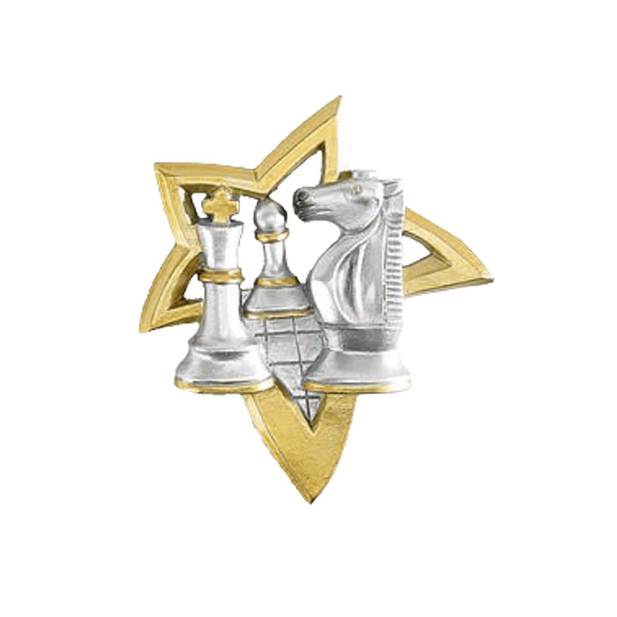 Trophée échec en résine or et argent.